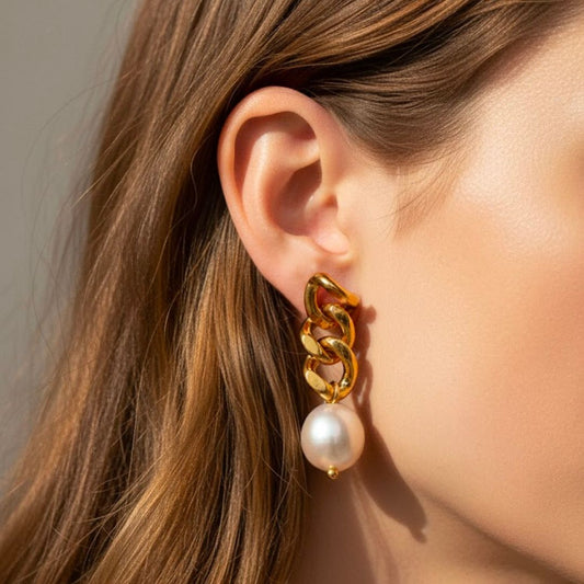 Edelstahl Ketten-Design Ohrringe mit Süßwasserperle