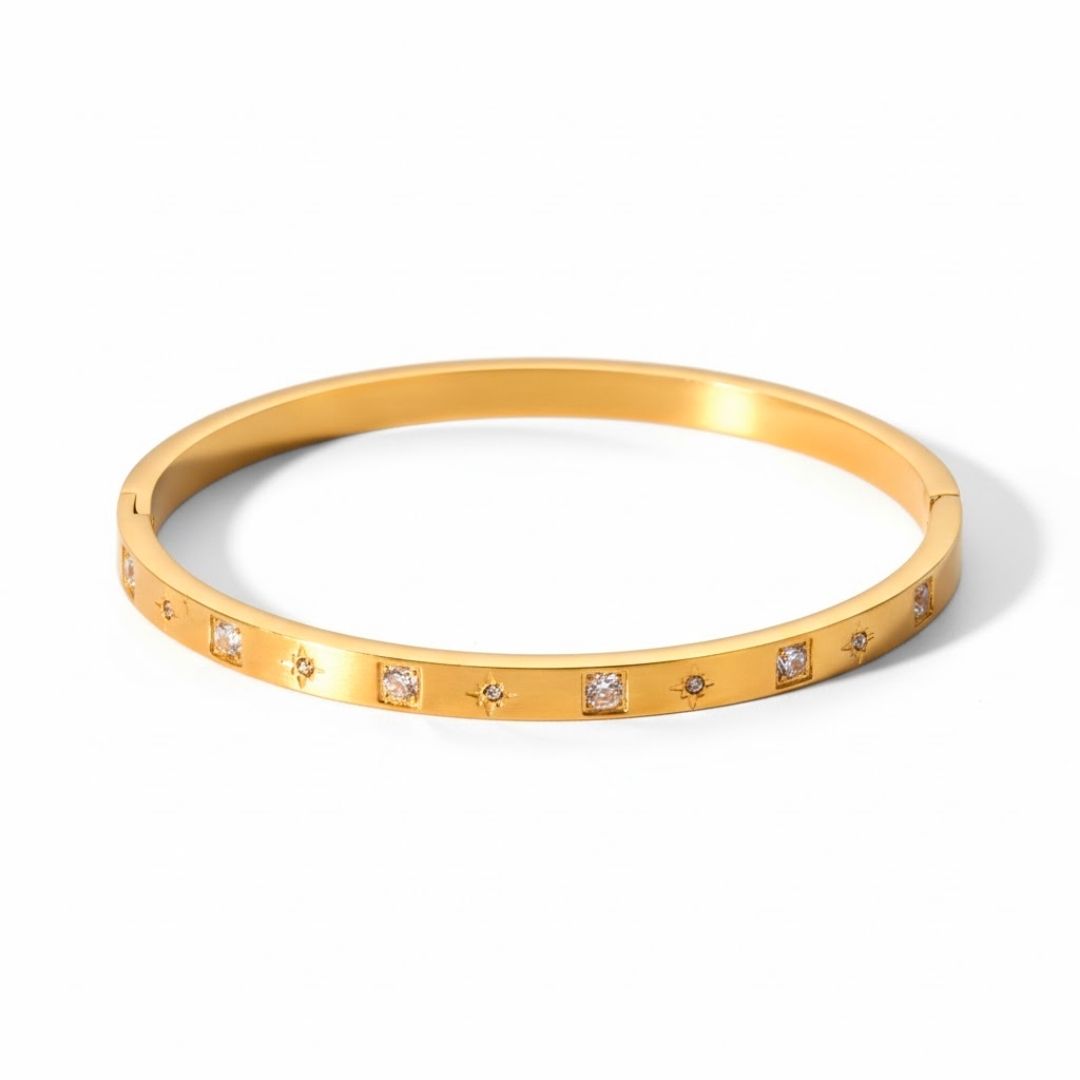 Edelstahl Quadrat- & Sternzirkonia Damenarmreif
