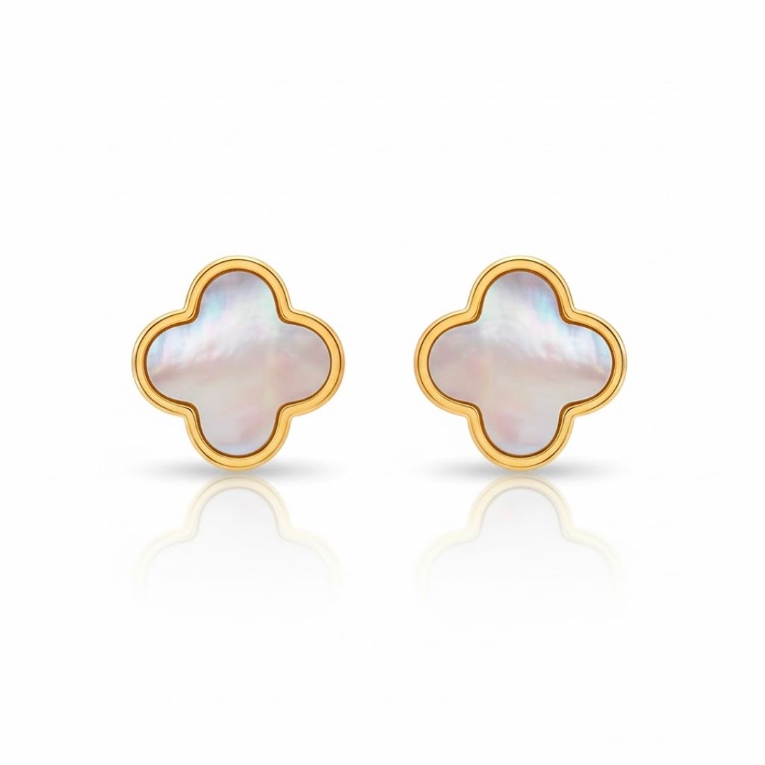 Edelstahl Weiße Kleeblatt Ohrringe